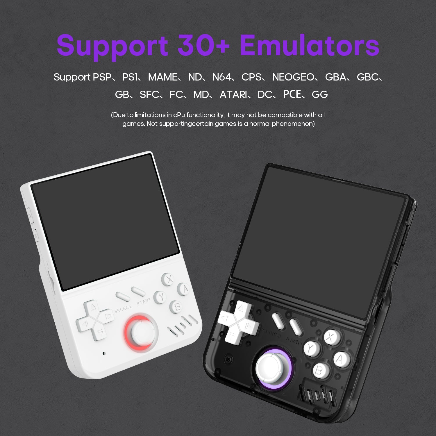 The RK3326 professional gaming chip, with a 1.5 Ghz 64-bit processor, is capable of smoothly runninglarge 2D games and some 3D games.