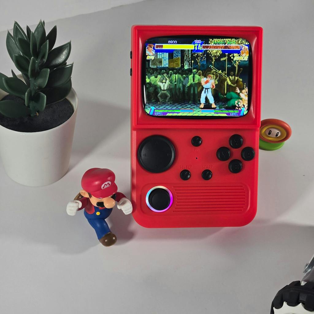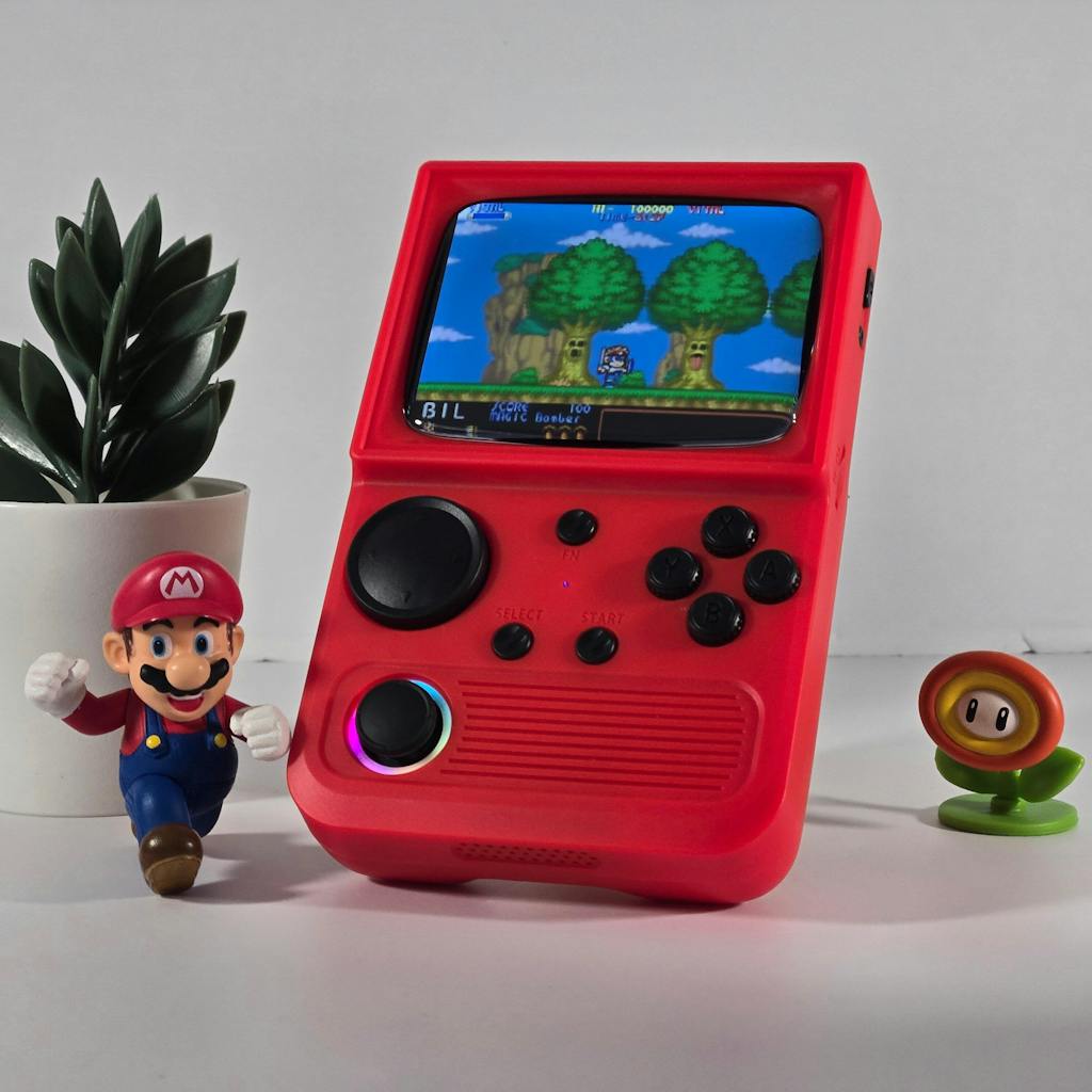 Designed for comfort and convenience, this handheld console fits perfectly in your hands, ideal for gaming on the go.